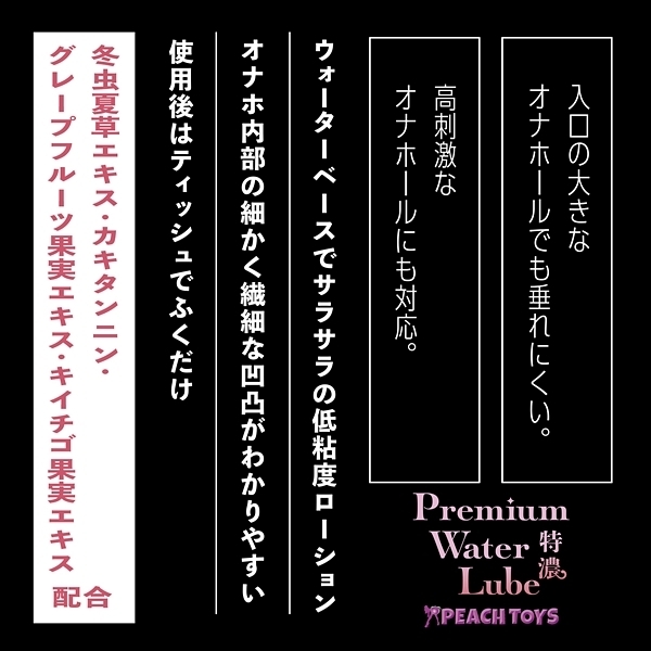 冬虫夏草エキス・カキタンニン・グレープフルーツ果実エキス・キイチゴ果実エキス配合●ウォーターベースでサラサラの超低粘度ローション●オナホ内部の細かく繊細な凹凸がわかりやすい●使用後はティッシュでふくだけ簡単●無香料●安心の日本製●500ml 特濃 <成分>水、プロパンジオール、ヒドロキシエチルセルロース、乳酸、キサンタンガム、ローヤルゼリーエキス、アルギニン、マカエキス、水溶性コラーゲン、グリチルリチン酸2K、ローズマリーエキス、モモ葉エキス、カキタンニン、銀、フユムシナツクサタケエキス、クエン酸、クエン酸Na、BG、エタノール、セルロースガム、炭酸水素Na、フェノキシエタノール、EDTA-2Na、ブチルカルバミン酸ヨウ化プロピニル