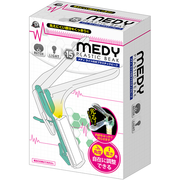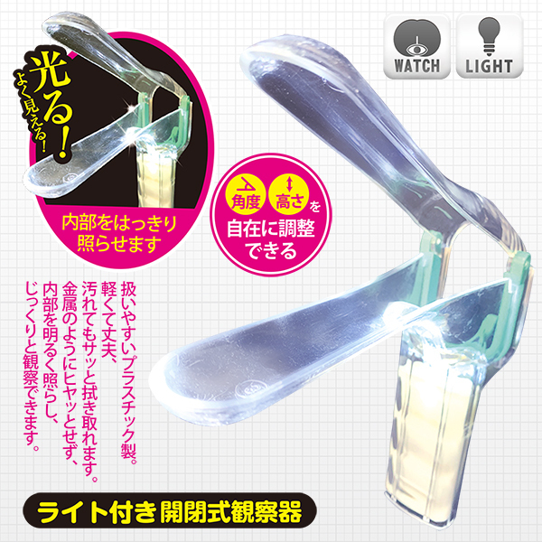医療プレイがリーズナブルに愉しめる!恥ずかしい内部をじっくり観察できるプラスチックビークに、なんとライト付きが登場!ヒヤッとしないプラスチック製で角度と高さを自在に調整可能。