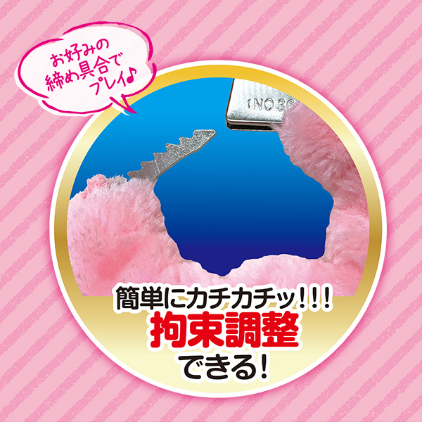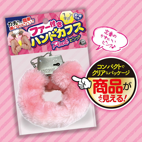オシャレにソフトSMしてみない?かわいいファー付きの手枷が、定番の4カラーで同時発売!もちろん、プレイが盛り上がる鍵も付属♪ファー付きだから、長時間でも痛くなりにくい!!カチカチッとスライドさせれば簡単に拘束調整ができ、鍵を万が一なくしても解除できる安全レバー付き!プレイだけでなく、普段のちょっとしたファッションにプラスしてもカワイイ♪やっぱりド定番のピンクにしちゃう?