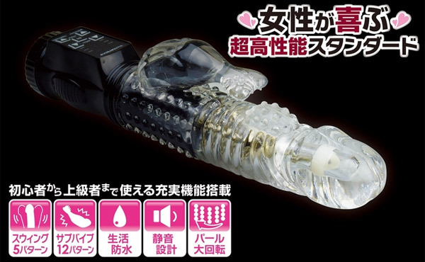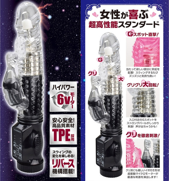 安心の高品質TPE素材でもちろんストレス臭カット!ハイパワー6Vモーターから繰り出す強力スイングとパール大回転で、Gスポットを含めた膣中を徹底刺激!超振動マイクロモーター搭載のクリバイブはこだわり抜いた突起付き形状。