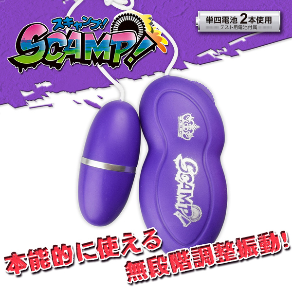 指一本で操作できるとってもSCAMPYなワンフィンガージョグダイヤルローター!握りやすい形状のリモコン部側面に配置された無段階強弱調整ダイヤルで簡単使用が可能、本能的に回してスキャンピンしようぜ!もちろんプレイの妨げにならない静音設計と生活防水搭載、めちゃめちゃ使い勝手の良いカジュアルローター登場!パープル