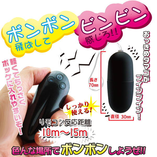 色んな所でボンボン飛ばしてビンビン感じよう!軽くて持ち運び易い遠隔仕様の小型ローター。プレミアムマット加工を施した3cm幅の卵型ローターでブインブイン快感!最大飛距離は10〜15m、振動は20種類を搭載。生活防水対応でメンテナンスも簡単♪よければ飛距離30m&ハイパワー「悶子の立ってられないR(b26797)」も是非どうぞ◎ブラック、単4電池を3本使用