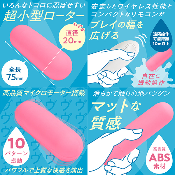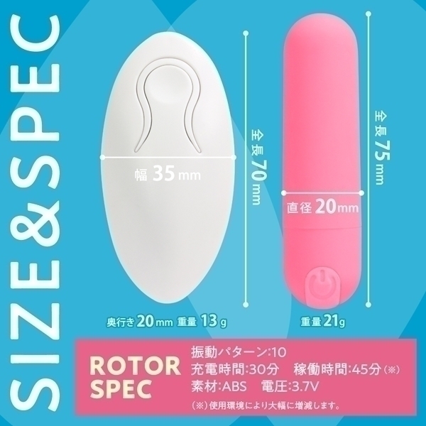 自由で快適な使い心地を追求したワイヤレスローターです♪直径約20mm、全長約75mmの超小型サイズで、持ち運びや収納にも便利!表面にはなめらかなマット素材を採用し、手にやさしくフィットします♪高性能マイクロモーターによるパワフルな振動を、10パターンから選択可能!静音設計なので、周囲を気にせず安心して使えます♪さらにIPX7相当の防水性能を備え、水に浸けても使用可能!使用後は丸ごと洗えて、衛生的に保てるのも嬉しいポイントです♪約30分の充電で、最大45分間の連続使用が可能!(使用環境により変動します!)水場でも遠距離でも活躍する高性能ワイヤレス設計で、さまざまなシーンにフィットします♪