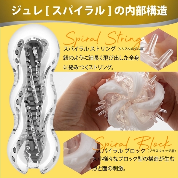 【ジュレスパイラルの内部構造】スパイラルストリング(クリスタルゲル層)紐のように細長く飛び出した全身に絡みつくストリング。