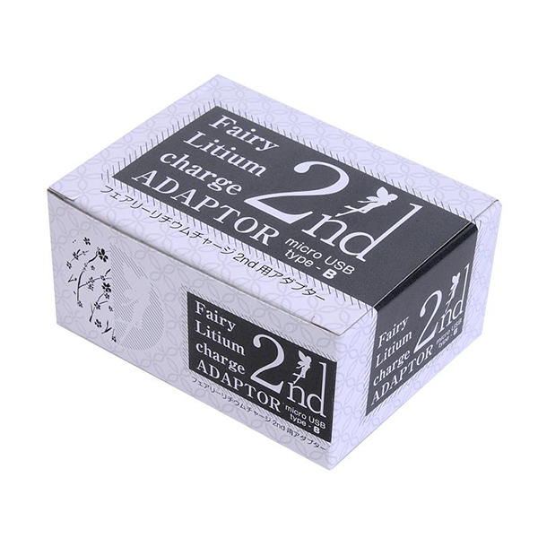 家庭用の電源から充電できる「フェアリーリチウムチャージ2nd(セカンド)」専用の充電アダプター(コンセント用)です。Androidスマートフォンや電子タバコのアイコス等に使われる最も普及している「micro-USB TypeB」の仕様となっております♪