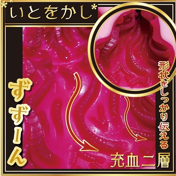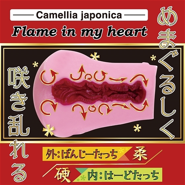 椿、その内に秘めた赤い情熱が無限お快楽を解き放つ。縦横無尽に赤い花びらがめまぐるしく咲き乱れる。不規則に咲いた赤い花(ビラ)は柔らかな桃色に染められ絶妙な甘蜜となる。無数に這う−椿−の情熱愛撫は脳裏から離れられなくなる。その刺激、炎のように熱く輝く。