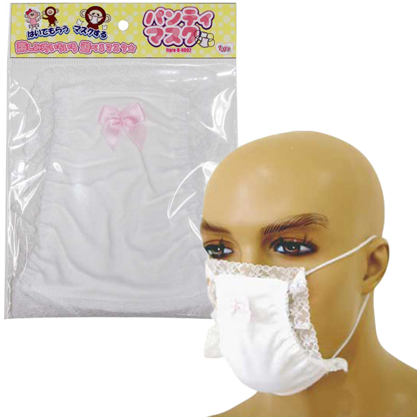 使用済み下着を購入したいが買えずにいる方、女性ものの下着を穿いてみたい方にも最適!清潔感のある白パンツをモチーフにしたユニークな日本製マスク。同色のレースやピンクのリボンで飾った愛らしいデザインが可愛い!穿いてもOK、マスクするのも勿論OK、色んな楽しみ方ができるパンツマスクです♪