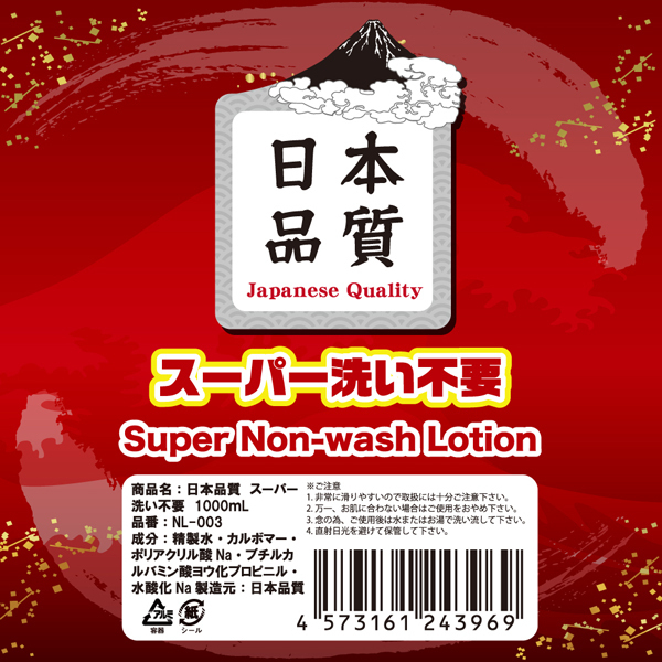 トップページ > 業務用品 > 業務用ローション > 日本品質 スーパー洗不要 (1000ml)