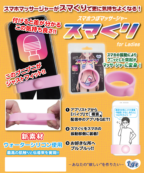 スマホに巻くだけでローターに早変わり!プニプニ柔らかくて気持ちいい突起付きのシリコンリング。携帯端末に本品を装着し、ダウンロードしたアプリで振動させるだけ!あとは自分の敏感な部位にフィットさせれば、どこでも手軽にピンポイント刺激が味わえる♪もっちりとした質感で伝導率抜群な新素材ウォーターシリコンを使用したお手軽携帯グッズです。