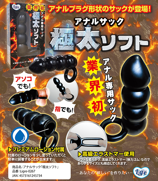 これを少し塗って頂くと簡単装着可能です!見た目にも格好いいアナル専用サック「極太ソフト」!怒張したアソコに被せたら激しいプレイの開始ですよ!