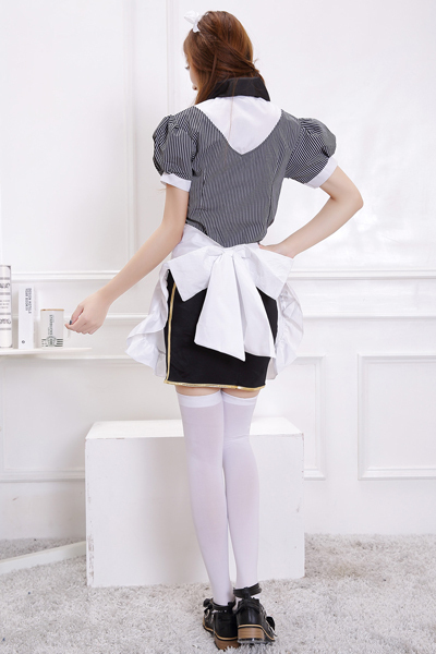 - Mサイズ(平置き):トップスB43cm・着丈51cm・肩幅43cm・袖丈19cm スカート丈52cm・W32〜38cm セット内容:トップス(サイドファスナー)、スカート(ウェストゴム入り・背面ファスナー、パニエ一体型)、エプロン、カチューシャ、ネクタイ(ゴムバンド仕様)