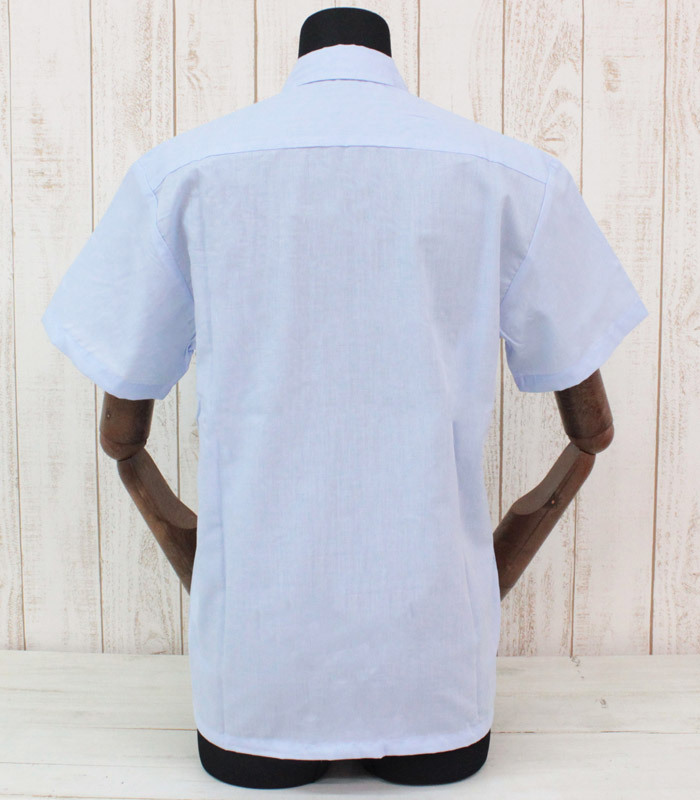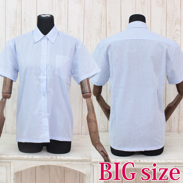 制服コスプレのマストアイテム!何かと重宝しそうな、爽やかサックスブルーの半袖ブラウス。