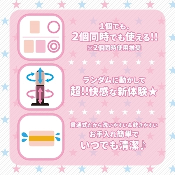 可愛いイラストが描かれたパケ買い必至の日本製オナホ。「にこにこいもうと」は360度大小様々なイボが張り巡らされたイボ壁が特徴!全長75mmと小さめに設定されているため、別売りの「やんちゃばーじょん(t10581)」と同時使用することで刺激倍増♪ランダムに動かせば超絶快感が体験できる!捻り、回転、ディープスロートなど好みの刺激をお楽しみ下さい。お手入れし易い貫通式