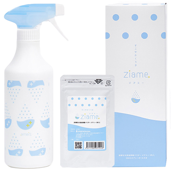 水道水に混ぜて溶かすだけ!いつでも新鮮な次亜塩素酸が作れる顆粒タイプの除菌&消臭液「ジアミー」。次亜塩素酸は古くなるほどパワーは無くなってしまいますが、ジアミーならいつでも手軽に次亜塩素酸除菌水を作れます♪肌に触れても大丈夫な弱酸性、濃度は自由に調整可能!除菌用マルチアトマイザー「フルガン(b31063)」と合わせても◎500ml分x3包とスプレーボトル付属