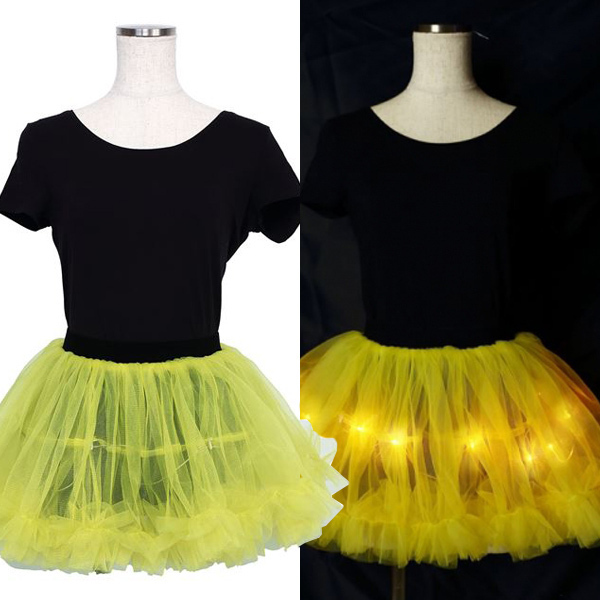ピカピカと光る!闇夜に映えるポップなパニエ♪内側についた光るワイヤーが点灯し、いつものコスチュームを輝かせます♪光るワイヤーは増やすことも可能なので、さらに目立ちたいなら別売りのワイヤーを追加するのも有り!皆の視線が一斉に貴方へ注がれることでしょう♪セットにはパニエとグリーンの光るワイヤー、電池ボックスがついており、光るワイヤーを取り外してパニエだけ使っていただくことも可能です。