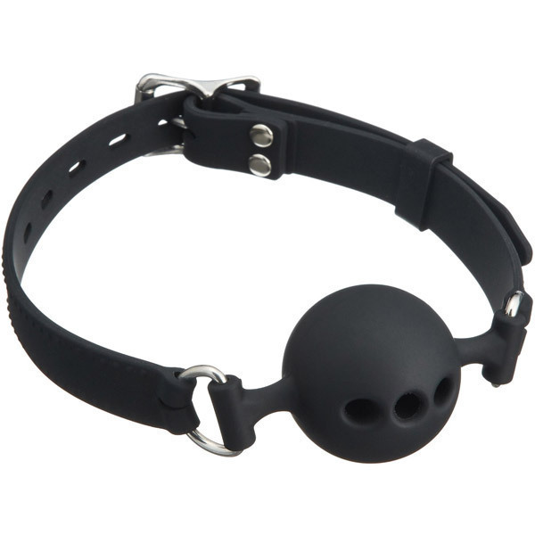 シリコン特有の密着性と伸縮性で装着感抜群!金具以外をすべて高級シリコンで仕上げた、虜シリーズのプレミアム版ボールギャグ(黒)。プラスチックに比べて耐久性が高く、水洗い出来るのでメンテナンス性も良好!口の両端にフィットする新構造で痛くなりにくく、SMビギナーさんでも安心してお使い頂けます。程良い大きさでオールマイティーに使える中玉サイズの口枷です。