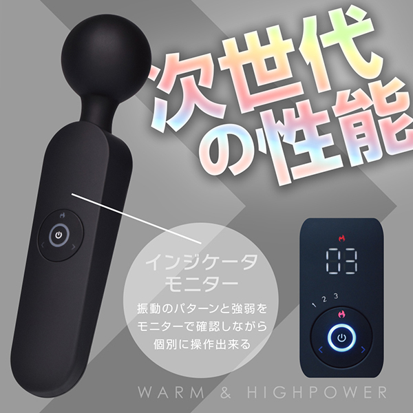 デジタルインジケーターで振動パワーとパターンを個別に操作!重めの振動とシリコンラバーヘッドにフレキシブルネック+マットコーティング加工で、最先端の機能製を駆使しながらインジケーター表示で好みの振動を操作できます♪加温機能も付いていて、12パターンのリズム振動に6段階の強弱、重振動をもたらす強力モーターと高機能的な電マとなっております。