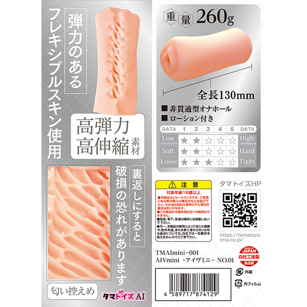 AIに数カ月間学習させて作り上げた理想的な非貫通型オナホールです♪コンパクトなサイズながらも、驚きの快感を提供します!ふわ柔な素材と相性の良いツルツルのヒダがローションを加えることで、ヌルヌルと絡みつき、快感を増幅させます♪内部は蜂の巣を思わせる小さなポケットが密集しており、立体的なスラッシュヒダがサオを奥へと誘い込む!ちょっとタイトめなキツ穴な感じと高さのある立体的なヒダがしっかりとした刺激を提供し、満足感を得られます♪国内工場で生産された高品質なフレキシブルスキン素材を使用しており、弾力とレスポンスの良さが抜群!小さめサイズでハンドリングしやすく、どんな時でも手軽に楽しめるデザインです♪パッケージイラストも内部構造もAIにお任せした、究極の非貫通型オナホールをぜひお試しください!●メーカー型番:TMAImini-001