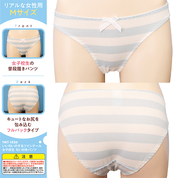 可愛らしいデザインと心地よい香りが楽しめるアイテムです♪女子校生の普段履きをイメージしたフルバックタイプで、キュートなお尻を包み込むフィット感が魅力!女性用Mサイズで設計されており、優しい色合いのホワイトと淡いブルーのデザインが特徴です♪生地は肌触りの良い素材を使用し、着け心地も抜群!心地よい香りが漂い、リラックスした気分を楽しめます♪数量限定の商品となっているため、特別なひとときを演出するのにぴったりです!