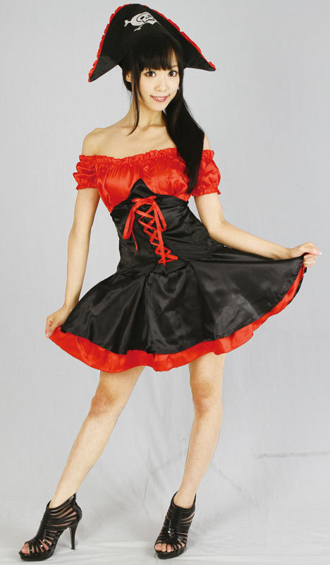 セクシーでキュートな女海賊に変身!赤と黒の可愛らしいパイレーツコスチュームです。ちょっぴり刺激的なラブタイムにも、仮装パーティーやイベントにだってバッチリ使えるコスプレ衣装!胸元には赤の編み上げリボン、帽子にはドクロのマークがついています。※サイズはおおよその目安となります。表記のサイズを基準に前後でお考え下さい。