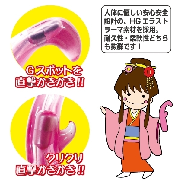 人気の潮吹バイブ「かき太郎」が進化!刺激ローターを搭載した姫バージョン「潮吹 かきひめ」。クリバイブの近くと先端付近にローターを搭載し、より刺激がダイレクトに伝わる様に改良されています。また、人体に安心な素材を使用!柔軟性、耐久性にも優れた一品です。普通のバイブとは一味違うかきだす快感で、お気に入りの一本になること間違いなし!単三電池×2本付属。