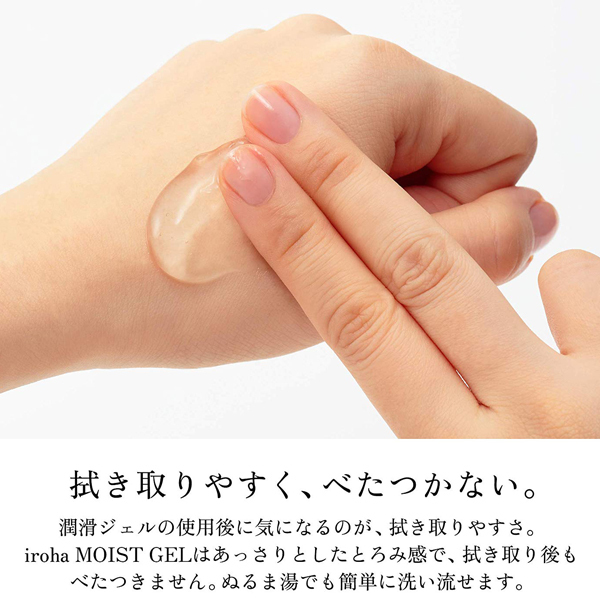 自然な粘りでベタつき少なく、乾燥肌や乾きやすいデリケートゾーンを少量でしっかり保湿!使用後は軽く拭き取るだけで後処理簡単♪また、お洒落なパッケージデザインなので実家暮らしでも安心!irohaシリーズと一緒に、日常使い用の保湿ジェルとしても◎