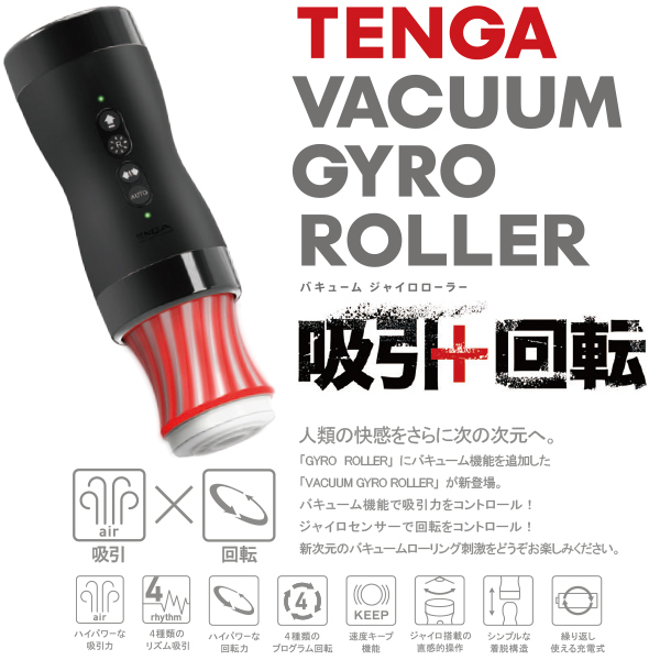 TENGAカップ用電動コントローラ「GYRO ROLLER」に強力バキューム機能を追加!4種類のリズム吸引×4種類の回転で刺激する「バキュームジャイロローラー」。