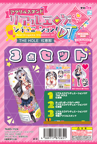 自宅スタジオ、リアルエロゲシチュエーション!DT公式コラボ商品。@リアルエロゲシチュエーション!DT THE HOLE 杠恵那(TMT-1660)Aおっぱいボードカバー63 リアルエロゲシチュエーション!DT 杠恵那(TAMS-1112)Bリアルエロゲシチュエーション! DT 杠恵那 特製アクリルスタンドの3点セット。