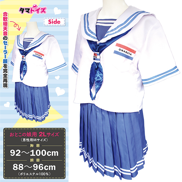人気VTuber合歓垣天音との特別なコラボレーションで生まれた一品です♪キャラクターのセーラー服を細部まで忠実に再現し、ファンにとって魅力的なデザインとなっています!爽やかな半袖タイプで、清涼感溢れる仕上がりが特徴です♪おとこの娘用に特別に設計されており、2Lサイズとして提供されています♪ポリエステル100%の素材を使用しているため、軽くて丈夫で、長時間の着用でも快適な着心地を実現しています♪こちらの数量限定版には合歓垣天音さんのアクリルフィギュアが付属しており、ファンにはたまらないコレクターズアイテムとなっています! TAMS-1227