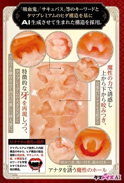 AIが理想を追求して設計した非貫通オナホール♪数ヶ月間、AIが徹底的に学習して生まれました!「吸血鬼」や「サキュバス」等の人気構造を融合♪内部のヒダが独特な刺激と心地よさを演出します!国内自社工場製の高品質な日本製アイテム♪穴の長さは約13.5cmで使いやすさも抜群!ローションも付属し、すぐにご利用いただけます♪ AIが生み出した新感覚の癒しをぜひ体験してください!●TMAI-11