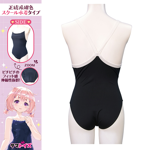 かわいらしさと清潔感を兼ね備えた紺色スクール水着です!フィット感のある生地がしっかりと体に寄り添い自然なシルエットを演出します♪ホワイトのパイピングがアクセントになりスポーティーかつキュートな印象をプラス!伸縮性のある素材で動きやすく快適な着心地を実現♪男性用Mサイズ相当の2Lサイズ設計でおとこの娘にもぴったりフィット!バスト88〜100cm・ヒップ90〜102cmに対応しています♪ワレメ風の立体カップ構造により♪衣装としての完成度を高めています!コスチュームやパフォーマンス用としてもおすすめです♪●TMT-1837