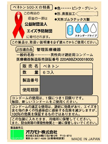 トップページ > コンドーム > ブランド > オカモト ベネトン500−X
