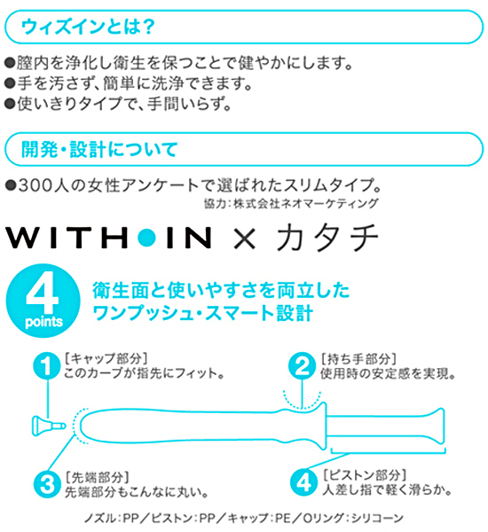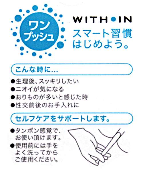 性交前後や生理中、オリモノが多い時に◎デリケートゾーンを内側から綺麗にお手入れできるクサノハ化粧品の日本製膣洗浄器(管理医療機器)。挿入しやすいスリムタイプで、衛生的な一回使い切りタイプ♪膣内に挿入してワンプッシュすれば手を汚さず簡単に洗浄できる!使い心地はとってもナチュラルで、初めての方でも安心してお使いいただけます。無色透明&無味無臭
