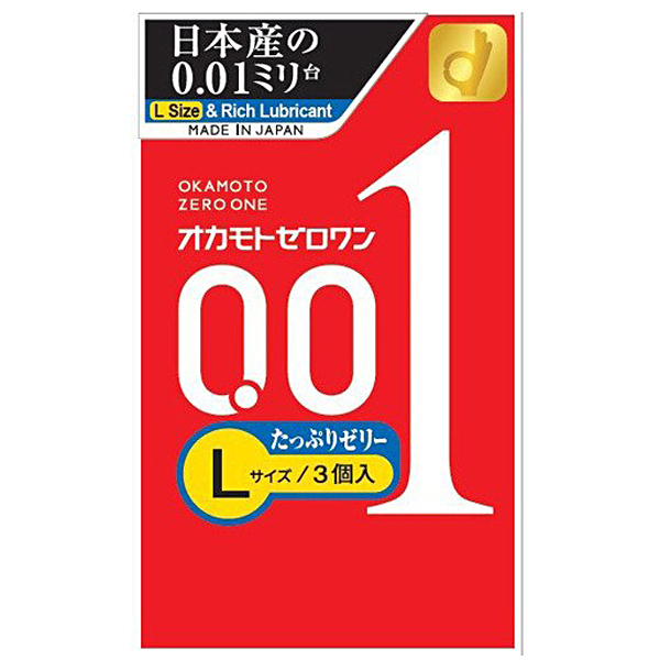トップページ > コンドーム > 薄い・厚い > 【オカモト史上最薄0.01】オカモト ゼロワン (Lサイズ たっぷりゼリー) 3個入