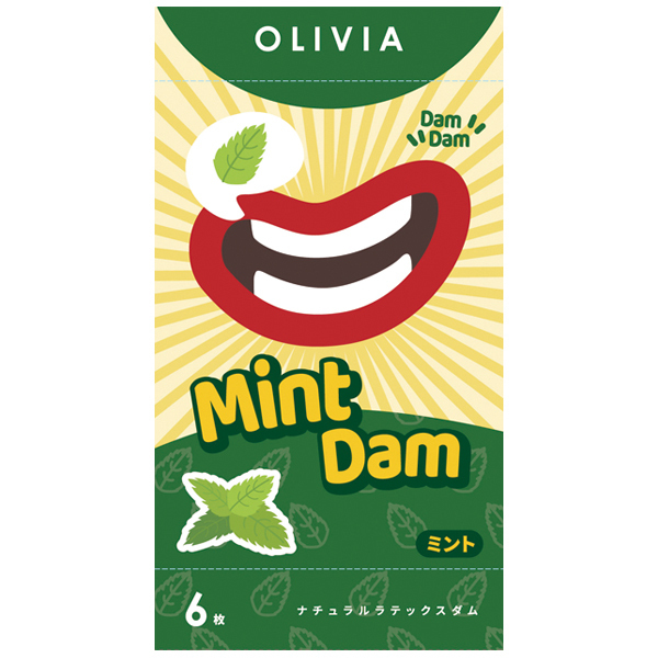 爽快感ある、爽やかなミントフレーバーシート♪ナメて、透かして!新感覚!やや薄めなシートの生感覚が素晴らしい!好きな香りを楽しみながらセーフセックス♪コンドームのような箱にパウチ状態で6個入っている、ミントフレーバー付きのラテックスシート。