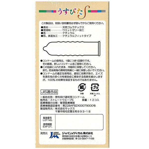 トップページ > コンドーム > サイズ(小・大) > うすぴた リッチ (S) 12個入り