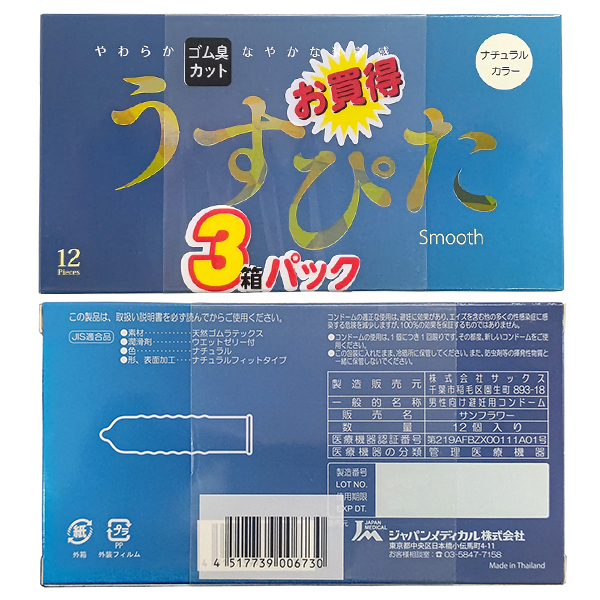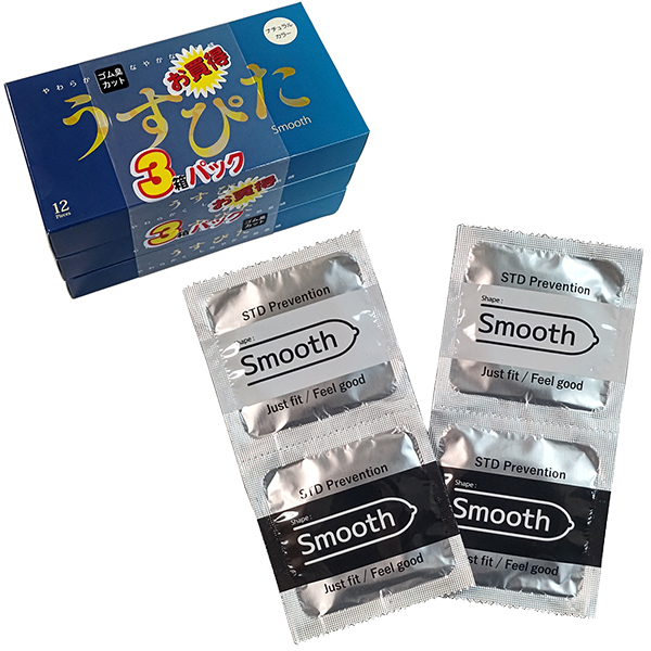 トップページ > コンドーム > 薄い・厚い > うすぴた スムース 12個入り×3箱パック