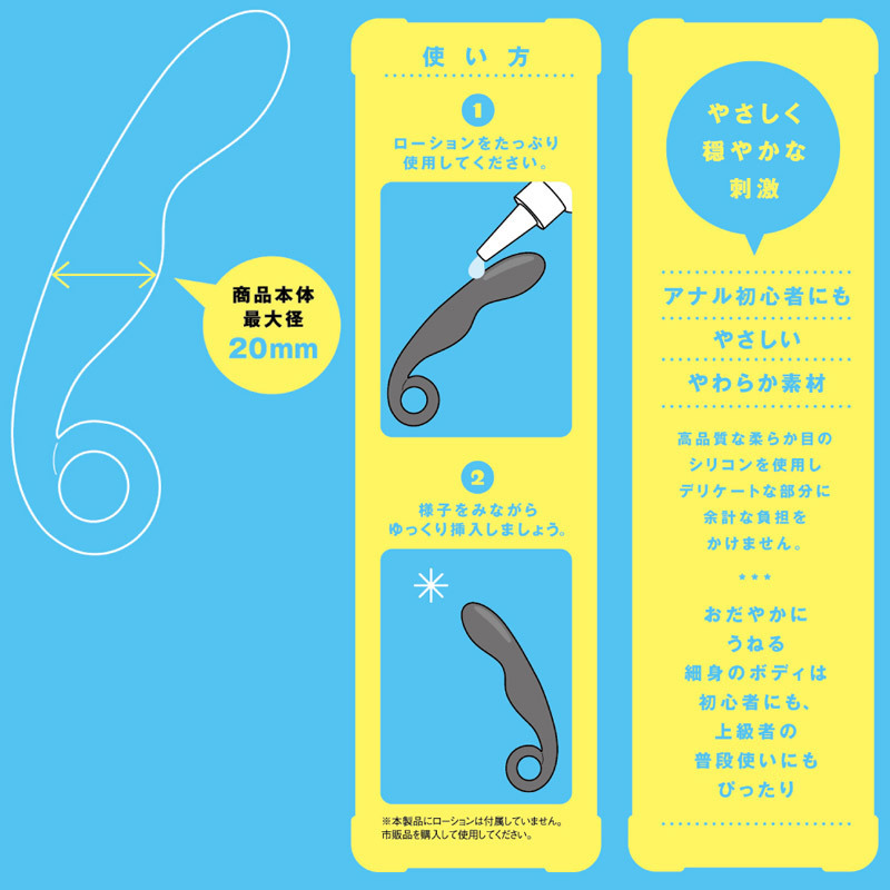 指かけリングがストッパー代わり!ゆるいウェーブが前立腺にも優しく当たる、最大φ20mmのアナルプラグです。
