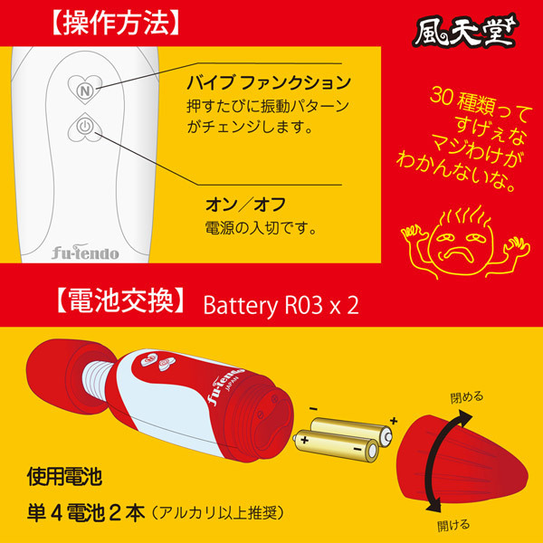 強弱を含め、30パターンの振動機能を搭載した電マが登場!赤白のツートンボディが映える、女性に優しい軽量タイプ。