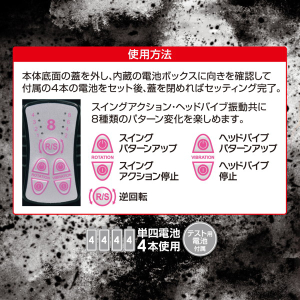 8種類の振動&スイングと刺激の変化をもたらすリバース機能など多彩なアクション搭載!挿入可能長153mmのストレートボディが内部をかき回し、ヘッドバイブでGスポを徹底的に刺激する♪止まらぬ快感に病みつきになること間違いなし!滑らかで柔らかな特殊ラバー素材使用。