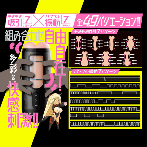 ぷにあな電動オナホの第2弾は、揉まれる吸引刺激7種類×ハイパワー振動7種類の合計49アクションを楽しめる♪内部素材には、柔らかく安全性と耐久性に優れたエラストマーを使用。固定用吸盤で壁や机など好きな場所に設置できるほか、145度まで好きな角度に調整可能!興奮度高まるぷにあなちゃん(CVそよかぜみらい)の喘ぎボイス10分収録。イラストは「maruku」氏