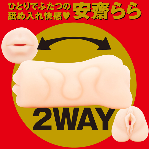 累計75作品に出演!人気AV女優「安齋らら」の上と下の二つの口を楽しめる非貫通オナホ。上は柔らかな唇と絡む肉厚舌、甘噛みする歯の刺激でリアルなフェラ感覚を楽しみ、下はGスポ&ポルチオゾーンで粒突起と横スジY型構造の緩急ついたクセになる刺激を体感!欲張りな貴男を一度に満足させるお得な日本製の2wayオナホ。ローション付