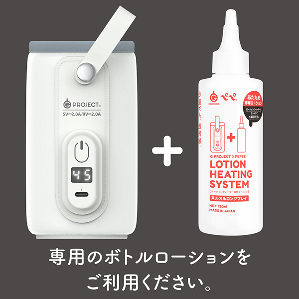 ローションぽっかぽか!ボトルローションをそのまま温めるだけ!最大温度45度まで温まるローションウォーマー!ローションウォーマー専用ローション(v02706)、(v02707)をご使用いただくことで、30分で45度まで温まる急速加熱機能搭載(2.0Aアダプタ使用時)。