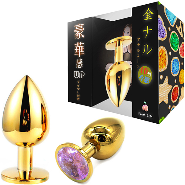 金色のプラグにキラキラとしたゴージャスな輝き!メタルの重量感・冷感がアナルを刺激し見た目も華やか。サイズもS・M・Lの3サイズあるため、お好みのサイズとカラーでお楽しみください。Lサイズ、ピンク