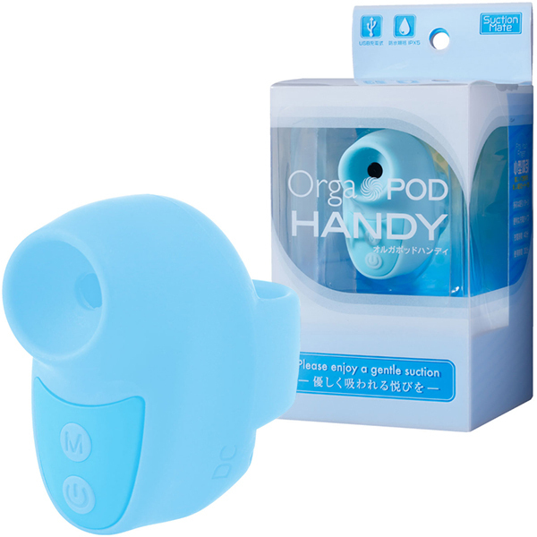 指に装着して使用する超小型サイズの「オルガポッドハンディ(ブルー)」です。