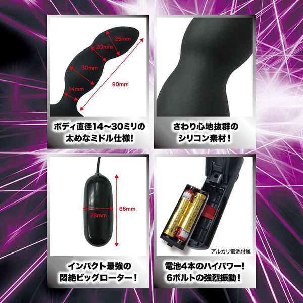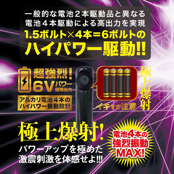 この太さがアナタを満足させるはず!さらに、ハイパワーを加速させるアルカリ電池付き!パワーアップを極めた激震刺激を体感せよ!