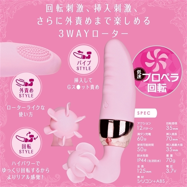 心地良い低速での回転がリアルな舌の感覚を再現したヘッドの反対側にはハイパワーの高性能モーター振動で外責め・挿入のどちらも楽しめる形状のバイブレーターヘッド。