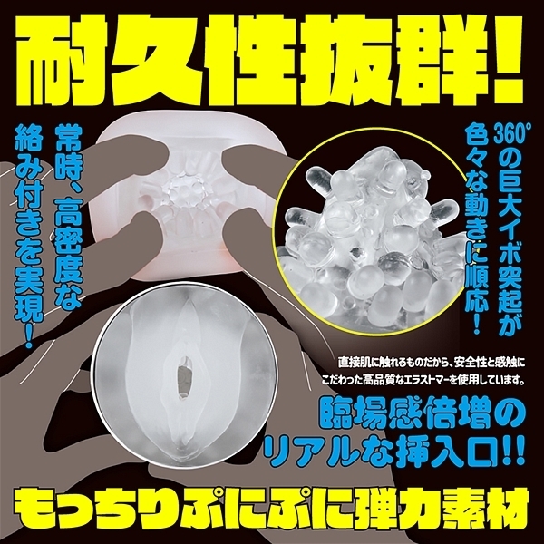 360°の巨大イボ突起が色々な動きに順応し、常時、高密度な絡み付きを実現!ぷにっと柔らかな臨場感倍増のリアルな挿入口もオススメです。