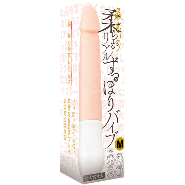 柔らかさとリアルな挿入感を併せ持つ「最高の柔らかリアルずっぽりバイブ」です♪柔らかいから奥までズッポリ挿れられる!痛くなりにくく、柔らかいから長時間プレイも可能で本気で悦ばれる♪エラストマー素材を使用した裸色造形がリアルな1本ものバイブでバイブのデメリットだった硬さの常識を覆した超・柔らか素材を使用!じっくりと確かな感覚をカラダでお楽しみいただけます♪本体の角度調整が可能なので自分の好みに合わせてスイング&バイブレーションが堪能でき、エラストマーの独特なニオイを大幅カットしているのでストレスフリーで使えます!完全防水(IPX7等級)なので使用後のお手入れも簡単♪パートナーとのプレイにも1人プレイにも大活躍!初心者から上級者まで幅広くお使いいただけるアイテムで、こちらはスタンダードなMサイズ。