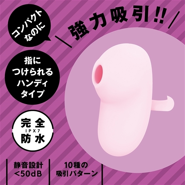 史上最強吸引ローター!指につけられるハンディタイプの吸引ローター!コンパクトなのにめっちゃ強力!優しいチュパチュパから激しいジュポジュポまで豊富な10種の吸引パターン!指につけられて手にフィットする形状だから使い心地もバツグン!完全防水だから使用後のお手入れもラクラクです!欲しいトコロ全部入ってる史上最強吸引ローターで絶対クリイキ宣言!敏感な部分に直接使うものだから押し当てても痛くない柔らかマット素材を使用しました。